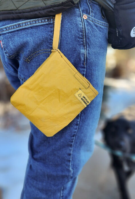 Our brand and our mission are founded on the concept of leave it better than you found it. We are stuards of the land, and try to keep as much of the outdoor gear we use out of the landfill. With that mindset we have chosen to use dontated broken tents that would end up as trash, and transform them into bags that pick up trash.